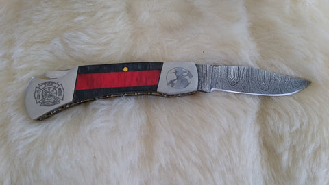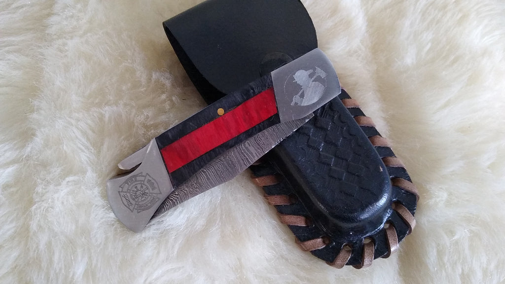 "THIN RED LINE"-LIMITED EDITION-FIRE FIGHTER COMMEMORATIVE. ONLY 6 KNIVES MADE AT TIME OF LAST FORGING