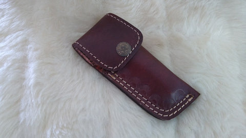 INCLUDES A HANDMADE, TOOLED, AND SEWN LEATHER SHEATH WITH BELT LOOP CUSTOM MADE TO FIT THIS KNIFE